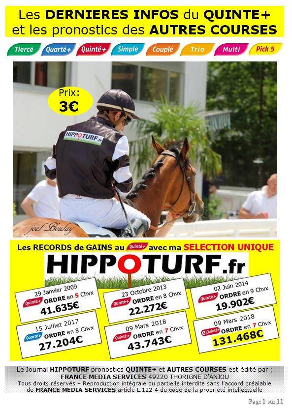 LE JOURNAL DE MA SELECTION UNIQUE DU QUINTE